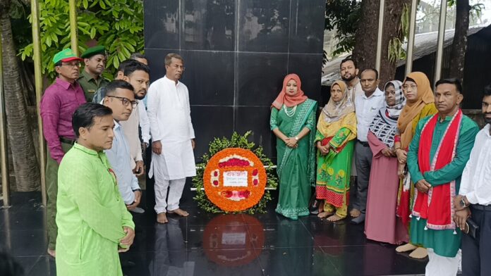 এর আগে সকাল ৭ টা ডাক বাংলা চত্বরে অবস্থিত শহীদমিনারে পুস্প স্তবক অর্পণ করে ১৯৭১ সালের অমর বীর শহীদদের প্রতি শ্রদ্ধা নিবেদন করেন সংসদ সদস্য আবুল হোসেন খান ও উপজেলা নির্বাহী কর্মকর্তা রুমানা আফরোজ সহ উপজেলা প্রশাসনের অন্যান্য কর্মকর্তা গন , মুক্তি যোদ্ধাবৃন্দ, বিএনপির নেতৃবৃন্দ বিভিন্ন রাজনৈতিক দল ও স্কুল কলেজের শিক্ষক, শিক্ষার্থী ও সামাজিক সংগঠন।