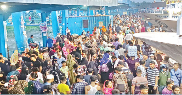 কর্মস্থলমুখি জনস্রোতে পা ফেলার ঠাঁই নেই দেশের দ্বিতীয় বৃহত্তম বরিশাল নদী বন্দরসহ দক্ষিণের সব নৌ ও বাস টার্মিনালে। বরিশাল নদী বন্দরের মূল টার্মিনাল থেকে রুট পারমিটের দ্বিগুন নৌযান ঢাকার উদ্দেশ্যে ছেড়ে গেলেও ধারণ ক্ষমতার দ্বিগুনের বেশী যাত্রী নিয়েও পরিস্থিতি সামাল দেয়া সম্ভব হচ্ছে না।
