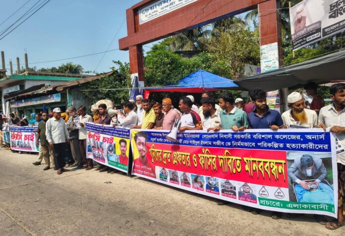 মোঃ জাহিদুল ইসলাম (বরিশাল) সংবাদ দাতা বাকেরগঞ্জে কলেজ ছাত্র সাইদুল ইসলাম সজিবের (২৪) হত্যাকারীদের গ্রেপ্তার ও বিচারের দাবিতে মানববন্ধন, বিক্ষোভ ও সড়ক অবরোধ কর্মসূচি পালিত হয়েছে। কর্মসূচিতে নিহত সজিবের পরিবারসহ সহপাঠী, বন্ধু ও স্কুল-কলেজের শিক্ষার্থীরাসহ এলাকাবাসী অংশ নেন।