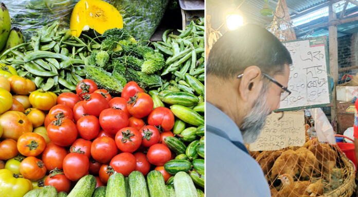 এ ছাড়া কাঁচামরিচ ১০০ থেকে ১২০ টাকা কেজি, পেঁপে ৪০ টাকা, মিষ্টি কুমড়া ৪০ টাকা, দেশি শসা ৬০ টাকা ও হাইব্রিড শসা ৩০ টাকা কেজি দরে বিক্রি হচ্ছে।