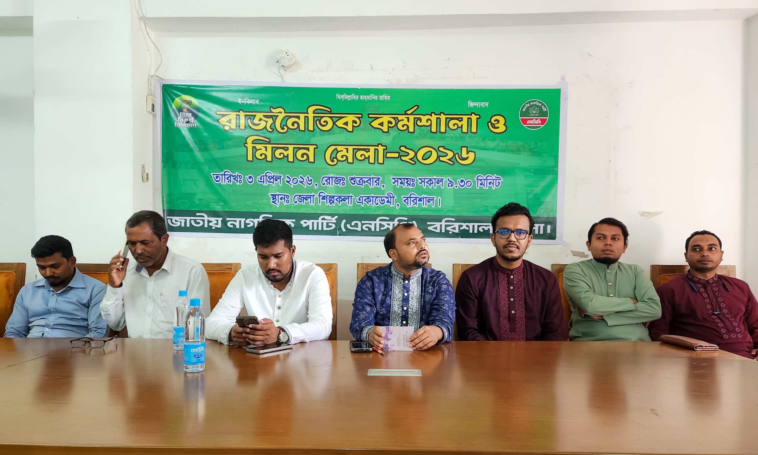 বরিশাল: জাতীয় নাগরিক পার্টি (এনসিপি) বরিশাল জেলা শাখার উদ্যোগে আজ বরিশাল নগরীর জেলা শিল্পকলা একাডেমিতে “রাজনৈতিক কর্মশালা ও মিলন মেলা–২০২৬” অনুষ্ঠিত হয়েছে। অনুষ্ঠানে প্রধান অতিথি হিসেবে উপস্থিত ছিলেন এনসিপির কেন্দ্রীয় সংগঠক আসাদ বিন রনি। বিশেষ অতিথি হিসেবে উপস্থিত ছিলেন কেন্দ্রীয় কার্যনির্বাহী সদস্য রফিকুল ইসলাম কনক।