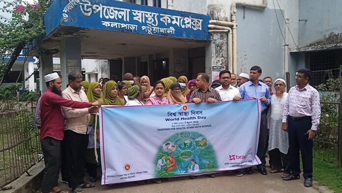 কলাপাড়া (পটুয়াখালী) প্রতিনিধি : “স্বাস্থ্য সেবায় বিজ্ঞান, সুরক্ষিত সকল প্রাণ” এ প্রতিপাদ্য নিয়ে পটুয়াখালীর কলাপাড়ায় শোভাযাত্রা ও আলোচনাসভা অনুষ্ঠিত হয়েছে।