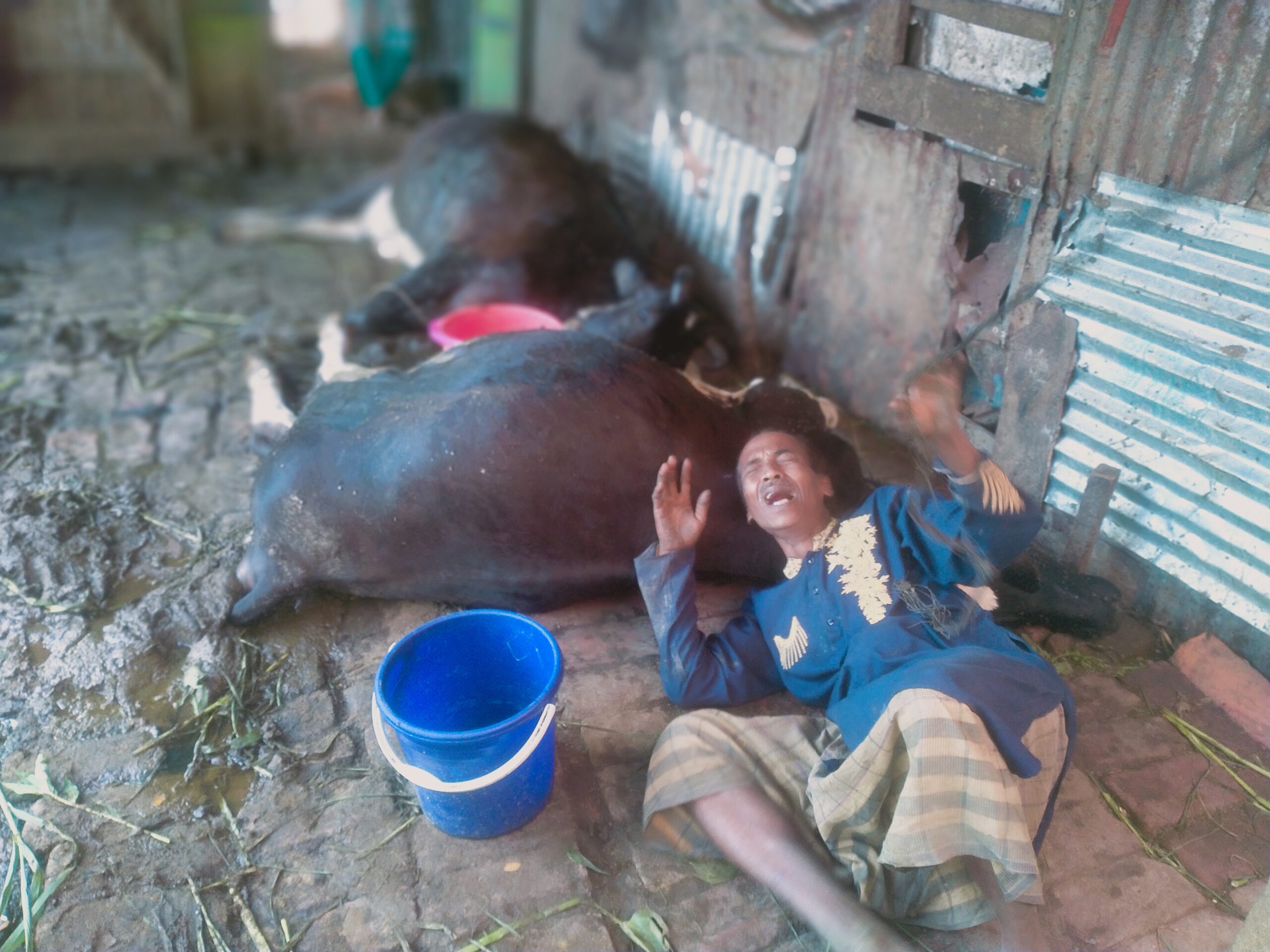 গোয়ালের দুটি গাভী মারা গেলেও দুটি বাছুর ও একটি গাভী অক্ষত রয়েছে। এদিকে জীবিকার মাধ্যম প্রিয় গাভী দুটিকে হারিয়ে বাচ্চু ও তার পরিবারের কান্না-আহাজারীতে এলাকার পরিবেশ ভারী হয়ে উঠেছে।