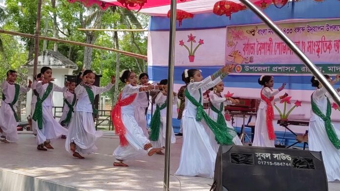 সুজন হোসেন রিফাত রাজৈর প্রতিনিধি : বাংলা নববর্ষ ১৪৩৩ উদ্যাপন উপলক্ষ্যে দিনব্যাপী বর্ণাঢ্য অনুষ্ঠানমালার আয়োজন করেছে মাদারীপুরের রাজৈর উপজেলা প্রশাসন। উপজেলা শিল্পকলা অ্যাকাডেমির সামনে নজরুল মঞ্চকে ঘিরে আয়োজনটি পরিণত হয় এক প্রাণবন্ত মিলনমেলায়। (১৪ এপ্রিল মঙ্গলবার) সকাল ৯টায় উপজেলা চত্বরে বর্ণাঢ্য র্যালির মধ্য দিয়ে উৎসবের সূচনা হয়।