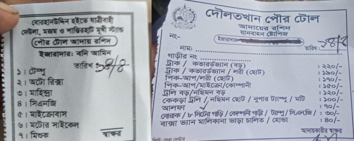 ভোলা: ভোলা পৌরসভায় নতুন করে ‘পৌর টোল’-এর নামে চাঁদাবাজির অভিযোগ উঠেছে। বিশেষ করে খেটে খাওয়া সিএনজি ও অটোরিকশা চালকদের কাছ থেকে জোরপূর্বক অর্থ আদায়ের ঘটনায় জেলায় তীব্র ক্ষোভ বিরাজ করছে। একই ধরনের অভিযোগ পাওয়া গেছে লালমোহন, বোরহানউদ্দিন ও দৌলতখান পৌরসভাতেও।