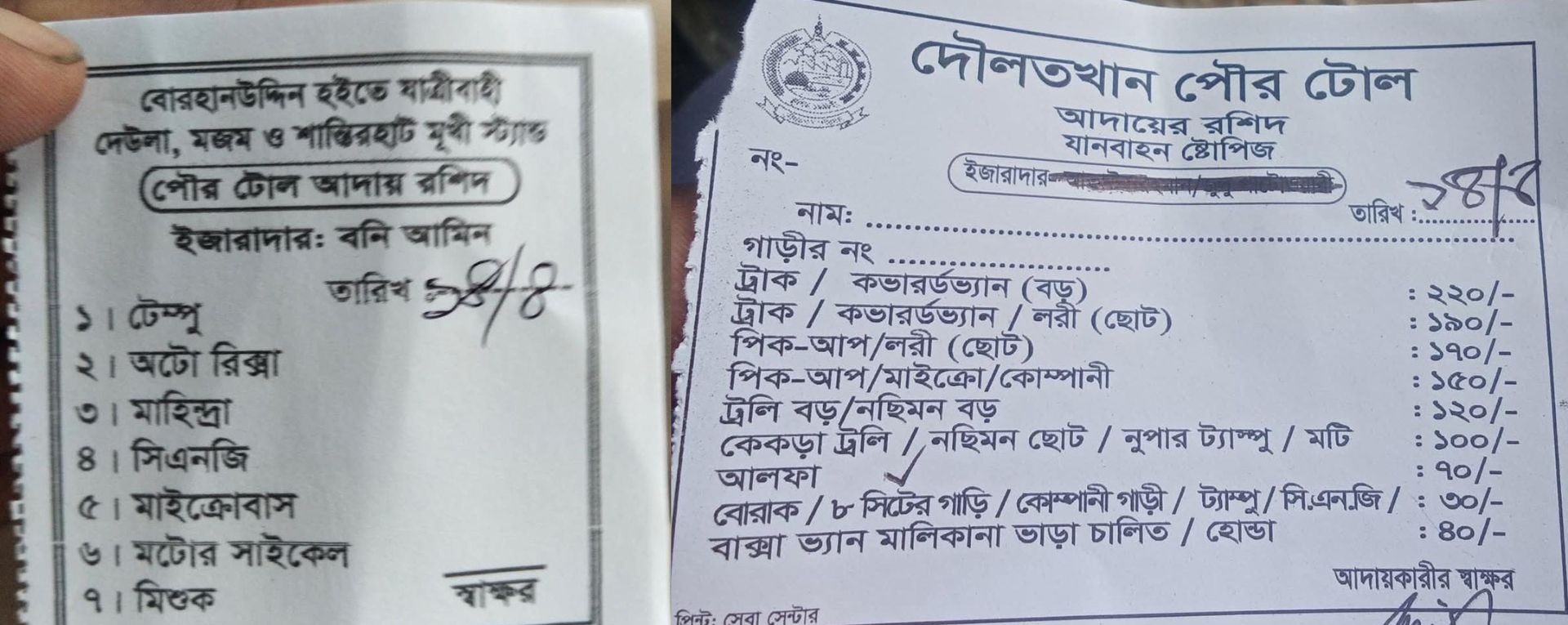 মঙ্গলবার (১৪ এপ্রিল), পহেলা বৈশাখ থেকে জেলা শহরের গুরুত্বপূর্ণ বিভিন্ন পয়েন্টে সিএনজি-অটোরিকশাসহ বিভিন্ন যানবাহন থামিয়ে টোল আদায়ের অভিযোগ ওঠে। অনেক ক্ষেত্রে কোনো বৈধ রসিদ দেওয়া হচ্ছে না বলেও অভিযোগ রয়েছে। টাকা দিতে অস্বীকৃতি জানালে চালকদের সঙ্গে দুর্ব্যবহার এমনকি যানবাহন আটকে রাখার ঘটনাও ঘটছে।
