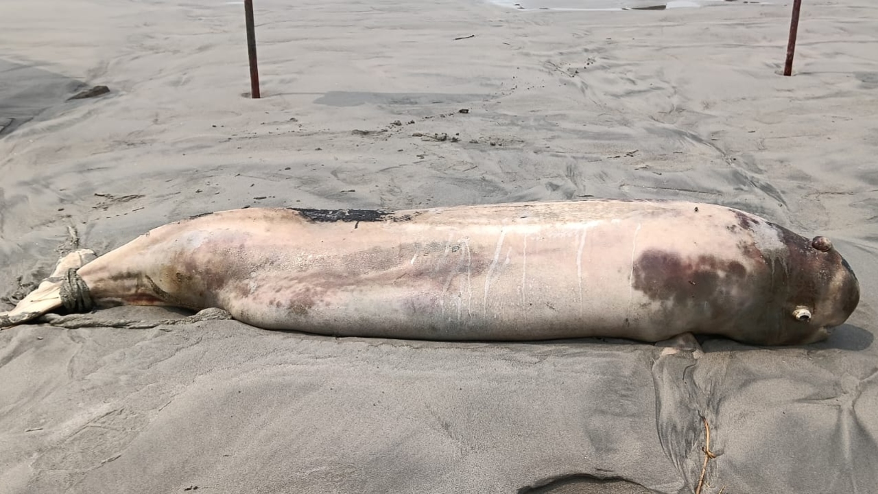 কুয়াকাটা সমুদ্রসৈকতে আবারও ভেসে এসেছে একটি মৃত ইরাবতী ডলফিন। বৃহস্পতিবার (১৬ এপ্রিল) সকাল ৬টার দিকে সৈকতের জিরো পয়েন্টের পশ্চিম পাশে জোয়ারের পানিতে ডলফিনটির মৃতদেহ আটকে থাকতে দেখেন স্থানীয়রা। স্থানীয়রা জানায়, মৃত ডলফিনটির শরীরের চামড়া উঠে গেছে এবং পেট ফেটে গেছে। এছাড়া শরীরের বিভিন্ন স্থানে আঘাতের চিহ্ন রয়েছে, যা ডলফিনটির অস্বাভাবিক মৃত্যুর ইঙ্গিত দিচ্ছে।