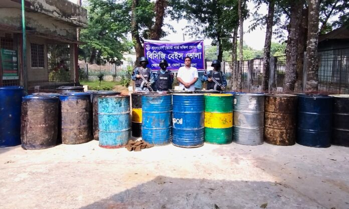 ভোলা প্রতিবেদক : ভোলার দৌলতখান উপজেলায় অভিযান চালিয়ে অবৈধভাবে মজুদকৃত বিপুল পরিমাণ জ্বালানি তেল ও ভেজাল ভোজ্য তেল জব্দ করেছে বাংলাদেশ কোস্ট গার্ড।