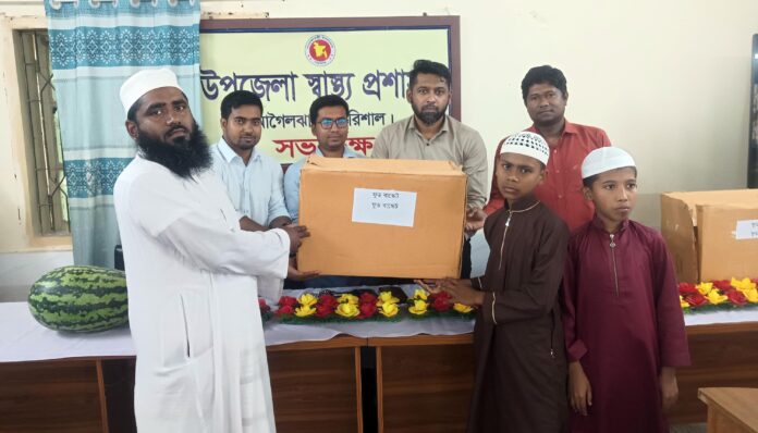 আগৈলঝাড়া (বরিশাল) প্রতিনিধিঃ জাতীয় পুষ্টি সপ্তাহ উপলক্ষ্যে বরিশালের আগৈলঝাড়া উপজেলা স্বাস্থ্য কমপ্লেক্সের উদ্যোগে শিক্ষার্থীদের মাঝে পুষ্টিকর খাবার বিতরণ করা হয়েছে। গতকাল রোববার সকালে উপজেলা স্বাস্থ্য কমপ্লেক্সের প্রশিক্ষণ হলরুমে স্বাস্থ্য কর্মকর্তা ডা. গোলাম মোর্শেদ সজিবের সভাপতিত্বে গৈলা আল ফারুক এতিমখানা ও মাদ্রাসার শিক্ষার্থীদের মাঝে পুষ্টিকর খাবার বিতরণ করা হয়।