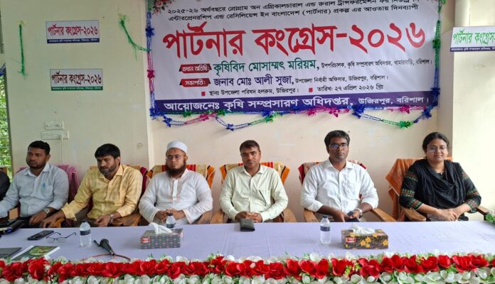 উজিরপুর (বরিশাল) প্রতিনিধি: কৃষি উৎপাদন বৃদ্ধি, পুষ্টি নিরাপত্তা নিশ্চিতকরণ এবং গ্রামীণ উদ্যোক্তা তৈরির লক্ষ্যে বরিশালের উজিরপুর উপজেলায় “প্রোগ্রাম অন এগ্রিকালচার অ্যান্ড রুরাল ট্রান্সফরমেশন ফর নিউট্রিশন, এন্টারপ্রেনারশিপ অ্যান্ড রেজিলিয়েন্স ইন বাংলাদেশ (পার্টনার)” প্রকল্পের আওতায় দিনব্যাপী কংগ্রেস অনুষ্ঠিত হয়েছে।
