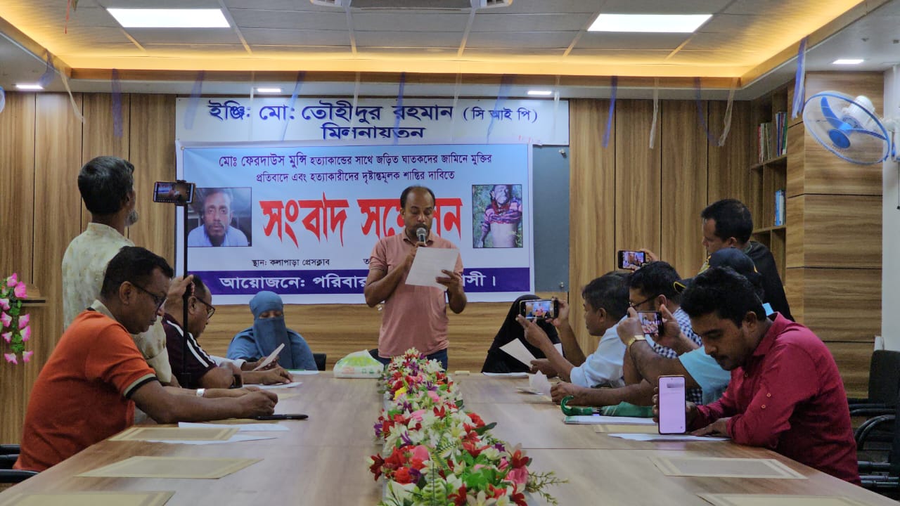 বুধবার সকাল সাড়ে ১১ টায় কলাপাড়া প্রেসক্লাবে সংবাদ সম্মেলন করে তাদের এ আশঙ্কা প্রকাশ করেন নিহতের বোন মামলার বাদী হাওয়া বেগম ও মানসুরা বেগম। গত ৮:জানুয়ারি কলাপাড়ার পশ্চিম মধুখালী সেতু সংলগ্ন খালের তীর থেকে মাটি চাপা দেয়া ফেরদৌস মুন্সীর মরদেহ উদ্ধার করে পুলিশ।